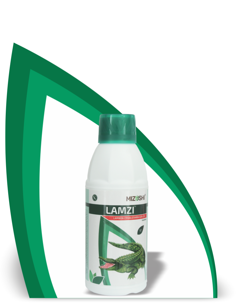 Lamzi is new generation insecticide with Capsule Suspension formulation means active ingredient is sealed in tiny thin walled capsule suspended in water, which release only when spray deposit on target pest & leaf surface.